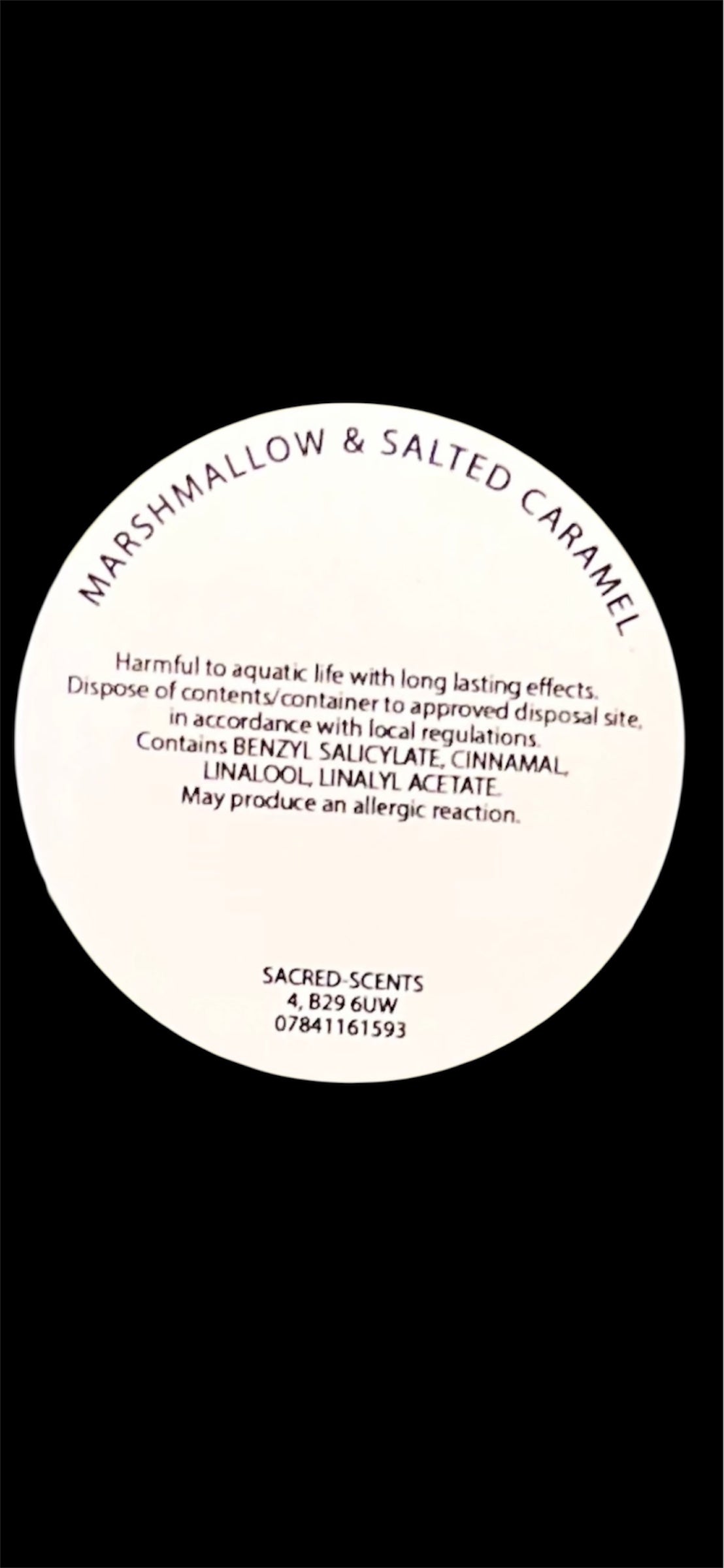 Marshmallow & Salted Caramel - A rich smooth accord with burnt sugar sprinkled on the heart of fluffy marshmallow and salted caramel, with a bottom layer of autumn musk.